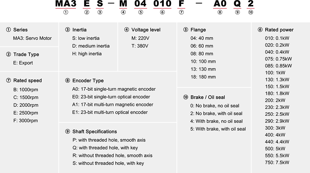 *For details on other model parameters, please refer to the selection manual or consult customer service.