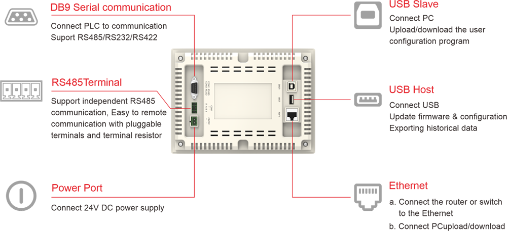 USB2.0 ×1, Type A (USB1), Suport USB updated firmware, configuration and storage data |